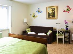 The “Monte Baldo” room has a big window and use of a shared bathroom (with the “Benaco” room). It can accommodate up to 2 people (a double bed with Dorelan mattress king size 195x200 cm) and a sofa. A parking space in the garden is included in the price.