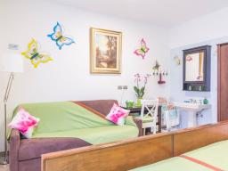 The “Colodri” room has two windows, a bathroom for private use, and can accommodate up to 4 people (a double bed (mattress size 160x200 cm) plus a sofa-bed (160x190cm) ). A parking space in the garden is included in the price.